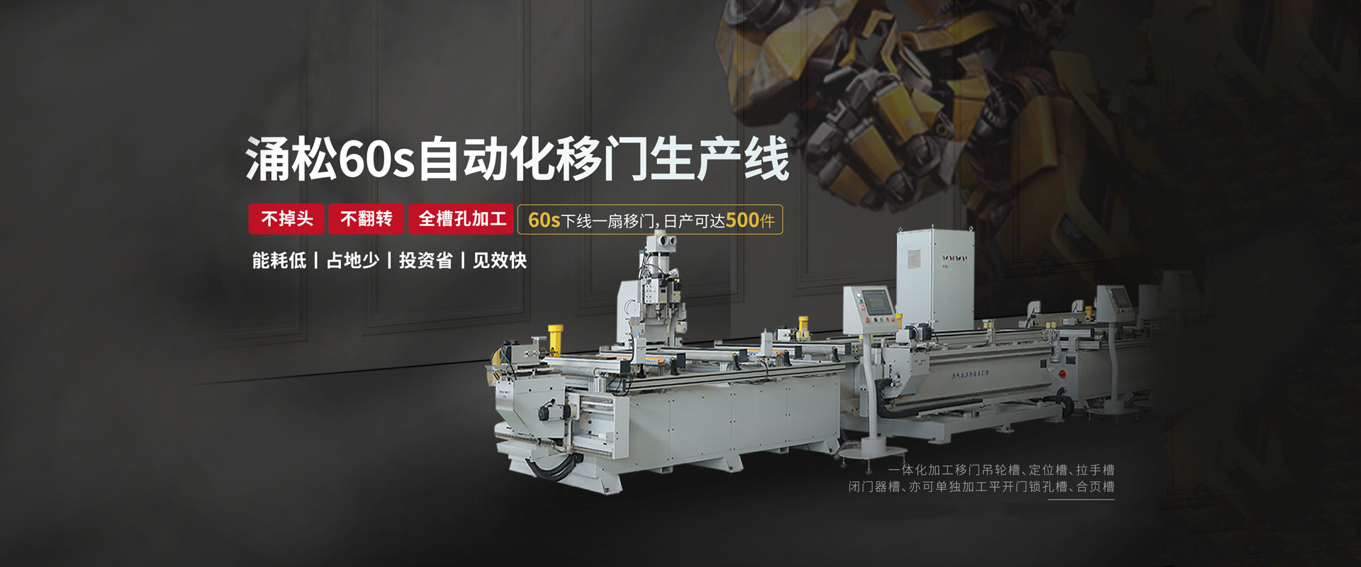 2021-01-30涌松榮獲2020金智獎(jiǎng) 涌松自動(dòng)化建立了全國(guó)首臺(tái)全自動(dòng)移門加工中心,以強(qiáng)大的兼容性適用多項(xiàng)移門五金件槽孔加工,其具備的單機(jī)多功能多軸加工工藝,可以提高一倍的產(chǎn)能,對(duì)于移門加工自動(dòng)化具有變革性意義。